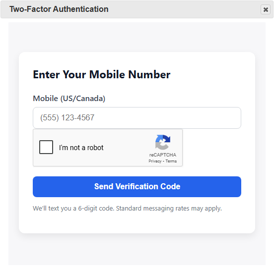 A code will be sent to your cell phone. Enter it into the screen to verify.